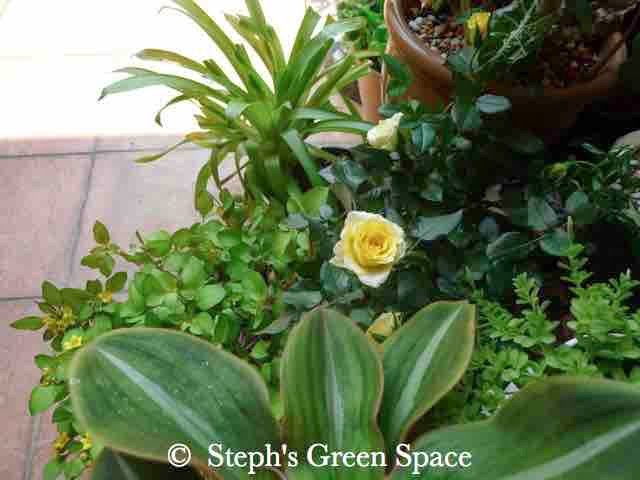 Newly bought but has past its prime, the yellow blooms of Roses Forever Mini Rose graced my porch for a few days before they faded.