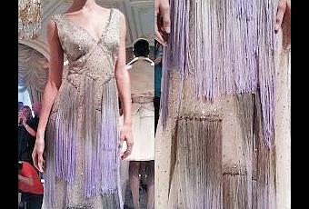 In true Basso fashion, there were plenty of furs including broadtail, sable and chinchilla which were all dyed to match the color palette. Dennis explained that the color palette for the collection was inspired by the sea like so many collections were this season and included blushes, champagnes, pearls, sky blue with metallic accents. I especially enjoyed the tassel details on the looks along with the gorgeous details. The furs he explained were to cover a lady up at night near the cold breeze from the sea. Other noteworthy details included cut ostrich feathers, glass beading, crystal embroidered lace, ombre fringe which was a nice modern take on the flapper look.