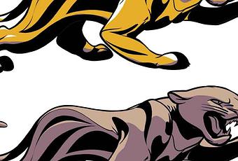 Some sports teams like to use a theme to inspire the animators to come up with something that represents the team. Mr. Rod was working on designs for the Jacksonville Jaguars and was given the ideas “claw” and “jungle.” It’s here that animators get to flex their creativity by coming up with the pose, coloring, and style of a design to evoke the connection between the team and what those themes represent.