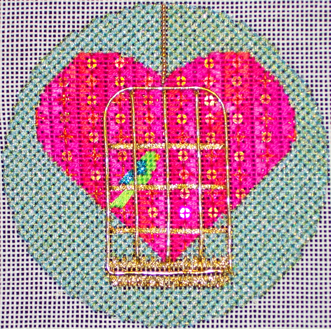 Birdcage Heart is a painted canvas with stitch guide, the photo really does not convey just how sparkly it really is!