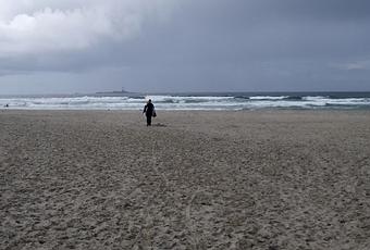 There is nothing As beautiful as a beach In winter. Dunes laid in snow, And sand, coated In shimmering hoarfrost. And that black, cold sea, Barely moving Under the watchful eye Of the pale January sun. It makes me think of journeys, Of comings and goings…and Destinations we know nothing About.