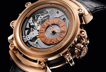 Bulgari honors its rich past with modern designs. Known for stylistic audacity and a penchant for color, Bulgari pieces are immediately recognizable. Designing with the sensuality of volume, a love of linearity and a reverence for the art and architecture of Bulgari's Greek and Roman roots, these iconic features are found in each of Bulgari's creations. Harmonized with Rome's ancient history, Bulgari incorporates the city's symbolism while innovating its design for the future. Classic yet contemporary, Bulgari upholds its 130-year legacy with a timeless sense of exquisite beauty. Bulgari Magsonic Sonnerie Tourbillon. When Bulgari incorporated the Gerald Genta brand under its own name, one of the more complicated models was this vividly designed, ultra-complicated timepiece that combined a tourbillon-style regulation system with an array of chiming functions. The movement contains over 900 hand-finished parts and the case is partially produced from the special "magsonic" alloy meant to enhance the music sounds. $620,000.