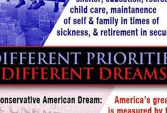 Progressives and conservatives really do have different priorities. Progressives think government should serve the people, while conservatives think it should serve the corporations. And as we should have realized by now, what is good for corporations is not necessarily good for the people (or even small businesses) -- but when the people prosper, everyone prospers (even the corporations).