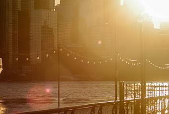 Hoboken, the Hudson River, Cherry Bloosms, the Empire State Building and Orange Juice