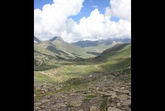 Raising my gaze, the world at a distance is softer, its contours green, a luscious green, a green which recalls past Springs. The foreground is rough and rocky, littered with rocks, some dull and others wet and glistening. A creek burbles, I know not from whence it comes. Just as I can't say who dragged in these smooth rocks and boulders.