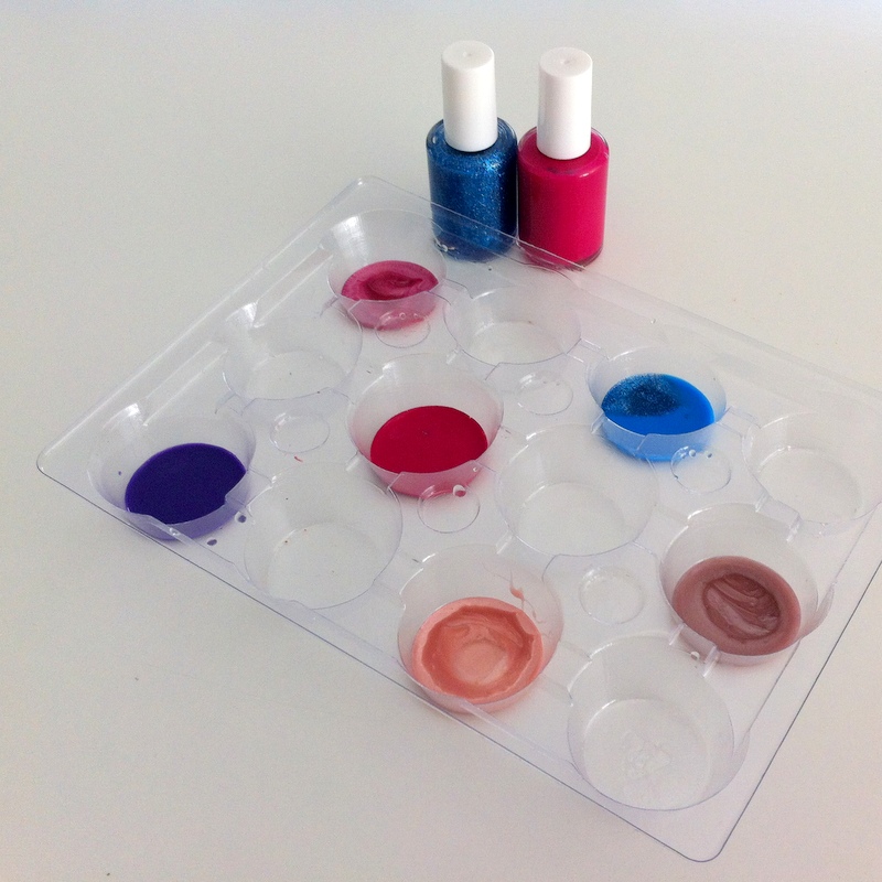 an idea where you could make your own play-makeup using nail polish. As I was holding a plastic Easter Egg tray in