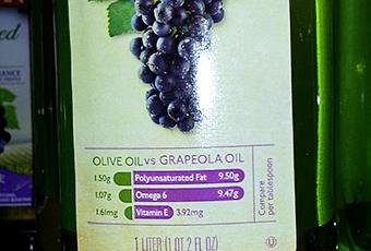 A reader sent me this picture of a bottle of Grape seed oil. They seem to imply that their oil is better than olive oil as it’s loaded with omega 6 PUFA and vitamin E. And most non-updated experts would likely agree.