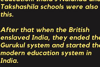 - After that when the British enslaved India, they ended the Gurukul system and started the modern education system in India.