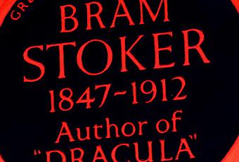 Bram Stoker (1847 – 1912) leaves one helluva bloody smear on the landscape of English fiction – his 1897 epistolary novel Dracula. His personal mark, like those of many an Irish man of letters, is left all over London. His name is carved into the stone of the Lyceum Theatre in the West End, where he worked for Sir Henry Irving for 27 years. He worked also at the Prince of Wales Theatre and on Fleet Street, on the staff at the Daily Telegraph. He died in St George’s Square, Pimlico, SW1 and his ashes are at Golders Green Crematorium – where his urn can be viewed by special appointment only.