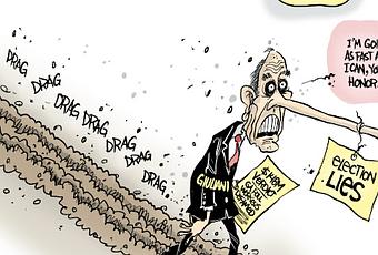 Dragging His FeetPolitical Cartoon is by John Cole in the Scranton Times-Tribune.