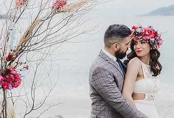 In vivid fuchsia, navy, burgundy and beige hues, this photoshoot stole our hearts! Inspired by the Greek natural surroundings, this photoshoot combines the breathtaking landscapes with bohemian, unique decorative details. Fresh, impressive floral designs, wooden furniture, gold and blue tableware and delicious treats create a scene straight out of heaven! The castle’s breeze, the sea and the olive trees completed the overall concept and added the essential nobility. Enjoy all the prettiness through the pictures below by Wed Pashalis!