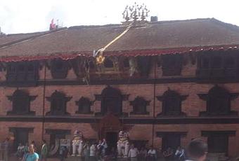 Kumari Ghar (Kumari resistance) is located within Kathmandu Durbar Square encompassing the residing animal of Kumari, the living goddess. Kumari is a Shakya community's virgin girl chosen as an incarnation of the goddess Taleju. It is a large building built with red brick, timber, and wooden pillars, featuring a number of doors and windows resembling the Buddhist viharas. After selection, the Kumari lives in this building until she matures. There is also a huge chariot inside the palace that carries her for the tour around Durbar Square during the Indra Jatra festivals.