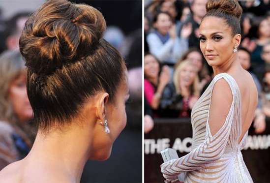 Here the bun is made high and it has a braided wraps. This is a classy hairstyle and makes you look elegant. This is a good hairstyle for those who have blonde or brunette hair.