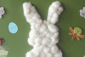 3. Spread glue all over the bunny outline as well as inside it. Start sticking balls of cotton wool to cover the bunny.