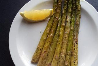 Place the asparagus on a baking sheet, drizzle with olive oil and give it a good shake, making sure its well coated. Sprinkle with salt, pepper, garlic powder and nutritional yeast. Roast the asparagus for 25 minutes, until crisp and tender. Serve immediately.