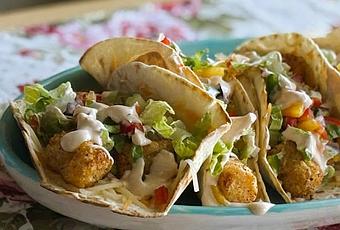 Soft flour tortillas, rich melting cheese, crispy spiced tater tots, your favorite taco toppings and a creamy drizzle sauce ensure that this is something everyone will love. You might even convert a few of the carnivores in your life!