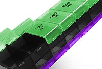 -- This organizer is perfect for keeping your pills organized and ready to go. It has 14 compartments, labeled for AM and PM, with markings for the day of the week.