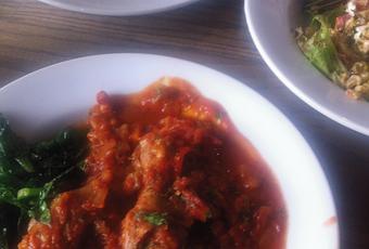 After awkwardly navigating through the entrance (the front door opens into a tiny enclosed space where you can presumably shake off rain and pull yourself together before opening another door that takes you into the restaurant) we found ourselves in a cosy little space, the first diners of the night. It’s a rustic place with a homey feel – stuffed deer heads and strings of onions adorning the wall – and earthy food to match.