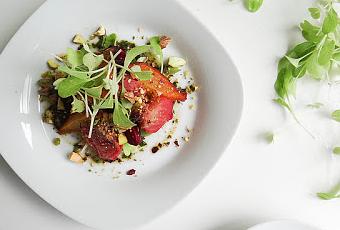 charred rainbow beet + pistachio salad by sunday morning banana pancakes