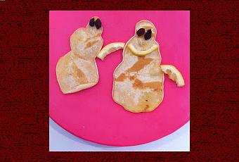 It's no secret that we often underestimate people, even those we love most. So here's a big shout out to my Happy Husband; "you're so clever!" While making pancakes for the kids' breakfast, he poured the three blobs of batter close together instead of wide apart, and 'hey presto' was able to present some fun edible craft; snowman pancakes. I probably wouldn't have used a lemon-pip for the nose, but who cares - set against the pink plate, these fast, fun and festive pancake people are perfect for a breakfast treat!... oh and did I mention he was cooking... yes; he's a good husband.