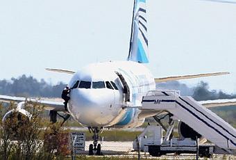 hijacker, identified as Seif Eldin Mustafa was seen wearing his 'suicide belt'. Mustafa hijacked the domestic Egypt Air jet