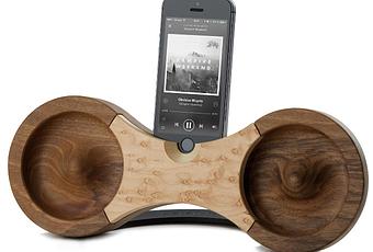 Tony Stark aka Iron Man is not the only Stark with clever ideas. The Eight Acoustic iPhone Amplifier from Stark Handmade speakers is something to behold. Carved in the shape of an 8 from Walnut and finished off with Birdseye Maple, this power-less speaker use the iPhone speaker to create an acoustic sound wherever you are. Each piece is unique in grain and character and only natural oil is used to tan the wood. The elevated positon allows you to keep an eye on your phone and it can still be charged via the build in slot with the included Lighting cable. For iPhone 5/5s.