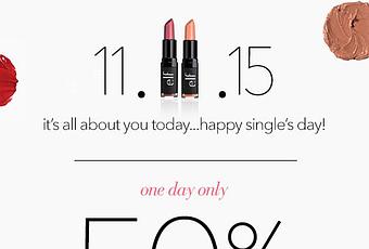 Attention Beauty and Deal Lovers! Today only, E.L.F. takes 50% off everything!! This is an amazing deal and the best time to buy all those E.L.F. products you have had your eye on. Add at least $30 to your cart and use code SINGLES to take 50% off! Also, get free shipping when you spend at least $35 after code! So add $70 of product to your cart and pay only $35 + FREE SHIPPING! This is such an amazing deal! Hurry over to E.L.F. before the items you want sell out! What are you grabbing!! Share with me what you purchased in the comments below!