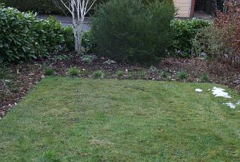 No real change in the last month in the front garden. You can see there is still a little snow on the lawn. The snow fell last weekend but the low temperatures meant that it has just sat there particularly in the shade. Saying that the general consensus today at the garden club was that where the ground is covered in snow it is doing better than soil exposed to the low temperatures and this is true as when the snow has melted new shoots are appearing quickly.