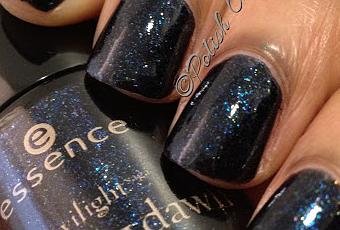 For Monday blues, I have Jacob's Protection from Essence's Breaking Dawn Part 2 line which I received from Amanda over at Fashion Footing. Jacob's Protection is a black jelly base with blue holographic microglitter. It's formula was okay. It was a bit thick, so I had to be careful with it. It applied well though and was opaque in two coats. Here are two coats with no base or top coat.