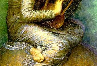 Miss Silver is unlike Miss Marple ain that she is a professional detective. She has an office, and distributes cards with the discreet message ‘Private enquiries’. Wentworth enjoys herself making the office a caricature of Victoriana, with heavy furniture and pictures like ‘Hope’ by G.F. Watts on the wall – paintings very much in tune with Miss Silver’s fondness for the poetry of Tennyson.