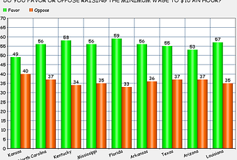 The Republicans in the Senate blocked a minimum wage raise to $10.10 an hour by using the filibuster, and in the House, the Republicans would even let a bill to raise the minimum wage get started. That must mean the people in those red states that keep electing Republicans must be opposed to raising the minimum wage. Right?
