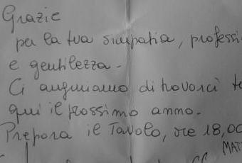 for your niceness, professionalism and kindness. We hope to find everyone here next year. Prepare the table for 6 o’clock.”