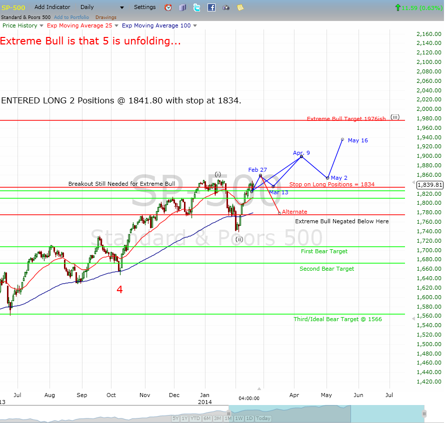 In that post, I indicated that there was a chance a big down wave setup could be built, but I was not personally there on the setup. February 20, Extreme Bull Update.