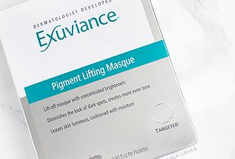 I've had a really positive experience with the Exuviance skincare brand in general.Their Firm-NG6 Non-Acid Peel was the last product I used and I thought it was both innovative and effective. Read my full review. I was really excited when I heard about the Exuviance Pigment Lifting Masque since I'm a big fan of sheet masks and brightening skin care and this product combines both. I had to try it of course!