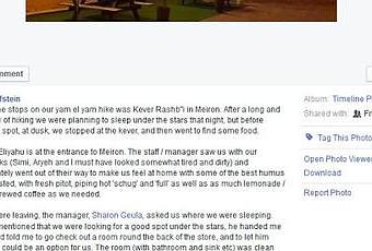 Beyond the practical comfort that Sharon and his friends who run Humus Eliyahu provided us (food, shelter etc), the warmth, friendship, chesed and 'ahavat chinam' that they demonstrated was inspiring.