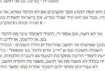 If he will try to prevent you from receiving budgets if you do not learn Gemara, I will come out against him. But if he says that without Gemara there will be no graduation certificate, that will be his full democratic right.