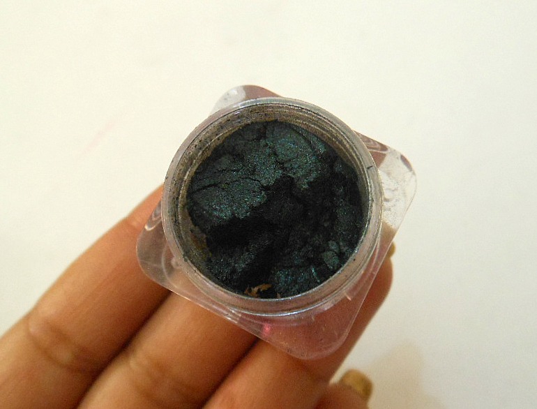 5. Khaki - is a khaki/mehendi green color with silver shimmers. It has more of soft green undertones that disperses well on the lids and gives a metallic look on the eyes. Will suit almost every complexion.