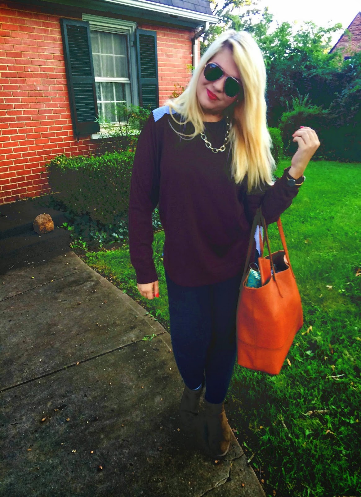 Outfit: Sweater- J.Crew, Skinnies- Old Navy, Booties- Target, Necklace- Coldwater Creek, Purse- J.Crew, Sunnies- Boutique Find, Bracelet- Bourbon & BowetiesYES FALL (insert hands raised in the air emojis!) This weather...this time of year...it's my fave. Mixed with this SOFT as anything J.Crew sweater and some beyond perfect imitation suede booties...I'm officially in fall dress mode. Granted, I may have jumped the gun a little bit. But who cares...FALL!