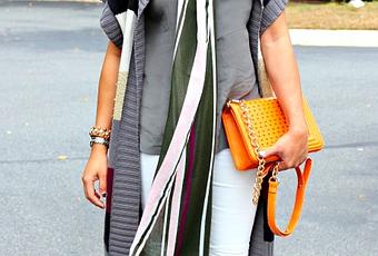 1) GO MONOCHROMATIC- pick out one pastel shade and create your look around that. Choosing one color simplifies the thought process and makes the look more cohesive. Make a concoction of pieces that are more cooler weather appropriate- like the cardigan and the scarf in my outfit. The cardigan here instantly transforms the white-denim-gray-top look into fall. In my case the color of choice was gray and most of the pieces in this look are in the same wavelength.