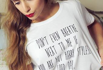 If there's one person I'm not afraid to admit that I fancy the pants off of, it's Mr Styles himself. So when I posted this photo on my Instagram and the fabulous girls from Rock on Ruby got in touch letting me know they could recreate it for me... I died! I obviously opted for it without the swearing so that I can wear it publicly and not offend anyone, but you can actually buy the Not Harry Styles Tee* for yourself! It is super soft t-shirt material and is something that you can style with just about anything. If this t-shirt, or their other designs don't tickle your fancy, you can design your own too!I'm in love with this t-shirt and if it wasn't so unhygienic, I'd wear it every day! Are you a big fan of slogan tees? If you could get anything put on a t-shirt, what would you choose? I think this one is right up my street! Let me know...
