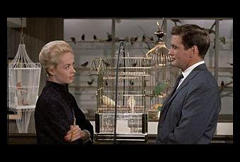 But I digress. Back to the film: San Francisco socialite Melanie Daniels decides to pursue Mitch Brenner (Rod Taylor) from San Francisco where they had a meet-cute in a pet shop, all the way upstate to his Bodega Bay weekend/family home. Her arrival seems to coincide with a series of vicious bird attacks on the town residents. The movie has no musical score, but does include bird sound effects, which add to the terror as the frequency and level of the attacks increase. Mitch is surrounded by women: his mother (Jessica Tandy), who initially resents Melanie's presence, his much younger sister (Veronica Cartwright), who immediately loves Melanie, and an old flame, Annie Hayworth (Suzanne Pleshette, in one of the most touching performances in a Hitchcock film), who welcomes Melanie, in a sad, world-weary way. No one in Bodega Bay is safe — from the birds or the director's special effects. Truly one of the all-time great films.