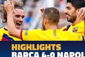 Ann Arbor, Michigan — For 47 minutes on Saturday at Michigan Stadium, it appeared that Napoli and Barça were headed for a scoreless draw. Then, in the blink of an eye, it was all over.nnClinging to a 2-1 aggregate lead after Wednesday’s triumph in Miami, and with the second half barely underway, the Catalans scored four times in 15 minutes to run up a 6-1 aggregate lead over Napoli, for all intents and purposes clinching the La Liga Serie A Cup with over 25 minutes to play.nnLuis Suárez opened the scoring in the 48th when he set Antoine Griezmann free on a give-and-go, only to see Griezmann’s shot saved before Suárez swooped in to stash home the rebound.nnEight minutes later, in the 56th, Griezmann notched his first Barça goal from the doorstep following an assist from Jordi Alba.nnJust two more minutes went by when Suárez scored his team-leading third goal of the preseason in the 58th, providing a clinical finish with a one-time shot from just outside the area that curled past the outstretched arms of the goalkeeper and into the upper right corner.nnOusmane Dembélé rounded out the onslaught in the 63rd, finishing with a low shot from the right edge of the area, back across the box and into the lower left corner.nnIt was a remarkable quarter-hour for FC Barcelona, which for the first time this preseason did not make any substitutions at the half, as manager Ernesto Valverde chose to keep his starting XI on the field in their final match before Friday’s La Liga opener at Athletic Club Bilbao.nnTHE BIG HOUSEnnThe win over Napoli was consummated at the biggest stadium Barça has ever played in. Michigan Stadium, on the campus of the University of Michigan in Ann Arbor, has a capacity for 107,601, and is the biggest stadium in the United States — and the second biggest in the world.nnAttendance here on Saturday was announced as 60,043. With fans dispersed throughout the cavernous seating bowl, one of the game’s most curious moments came midway through the first half, when during a water break match officials posted a message on the Michigan Stadium jumbotrons encouraging fans to “feel free to move down closer to the field and fill in any empty seats.” Within seconds, thousands of fans began percolating down the stands, making for a more energetic atmosphere throughout the rest of the match.n----nFC Barcelona on Social MedianSubscribe to our official channel http://www.youtube.com/subscription_center?add_user=fcbarcelonanSite: http://www.fcbarcelona.comnFacebook: http://www.facebook.com/fcbarcelonanInstagram: http://www.instagram.comnTwitter: http://twitter.com/FCBarcelonanViber: http://chats.viber.com/fcbarcelona