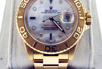 This stunning yellow gold Yachtmaster is the perfect, all-time classic timepiece. It’s solid on the wrist without being bulky, and has the tony presence of a Rolex without being stuffy. The mother of pearl dial and sapphire and diamond markers elevate this particular Yachtmaster to a level of distinction that perfectly complements its wearer’s. Specs below, and happy weekend!