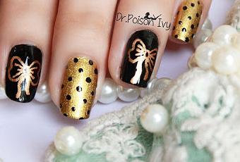3.ON BLACK BASE- Use gold colored nail art pen to draw a BOW.