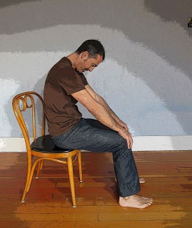 4. Repeat these movements for at least six rounds of breath. After you finish, you may want to stand up for a moment to stretch your legs out. Second Variation: Standing Cat-CowThe standing version of Cat-Cow is a good counter-pose to release any tension in your spine and neck after practicing long holds of standing poses. Of course, as with seated Cat-Cow, you won’t get the arm, upper body, or wrist strengthening benefits. 1. Start by standing in Mountain Pose. Then bend your knees slightly while keeping your spine upright and place your hands on the fronts of your thighs.2. On an inhalation, tip your pelvis forward over your thighbones, gently arch your spine into a backbend while turning your chest up and lifting your chin to take your head slightly back. Keep the back of your neck feeling long to protect your neck. This is the Cow equivalent of Cat-Cow.3. On your next exhalation, tip your pelvis baclin the opposite direction, rolling it back over your thighbones so your sitting bones and tailbone turn down toward your heels. Allow your spine to rounds backward and your head and neck drop gently towards your chest. This it the Cat equivalent of Cat-Cow. 4. Repeat for at least six rounds of breath, and then return to Mountain pose. Third Variation: Reclined Cat-Cow This version is for people who cannot bear weight safely on thier hands or knees, or in those who are severely fatigued. It does not work your arms as the classic Cat-Cow does, nor does your neck area move, but your spine does get to flex and extend. I usually refer to this variation as “Pelvic Rock and Roll.” 1. Start by lying on your back with your knees bent, your feet on the floor about a foot from your hips and hip-distance apart, and arms relaxed at your sides. 2. On an inhalation, rock your pelvis towards your heels, allowing your lower back to arch away from the floor. This is the Cow equivalent of Cat-Cow. 3. On your next exhalation, roll your pelvis back towards your shoulders, allowing your lower back to come gently down to the floor and turning your tailbone and sitting bones up towards the ceiling. This is the Cat equivalent of Cat-Cow. Be careful not to launch up into Bridge pose—your hips remain on the floor in this pose. 4. Repeat for at lease 6 rounds of breath. When you have finished, stretch your legs out long on the floor to release any tightness in your front hip joints. Subscribe to Yoga for Healthy Aging by Email ° Follow Yoga for Healthy Aging on Facebook ° Join this site with Google Friend Connect