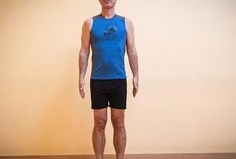 If this pose is difficult for you because you have tight shoulders or hamstrings, practice it with bent knees so it is comfortable. Rather than paying too much attention to your alignment, focus on feeling your breath move in your body. See Featured Pose: Downward-Facing Dog Pose for information on Downward-Facing Dog.3. Standing Forward Bend, just briefly.