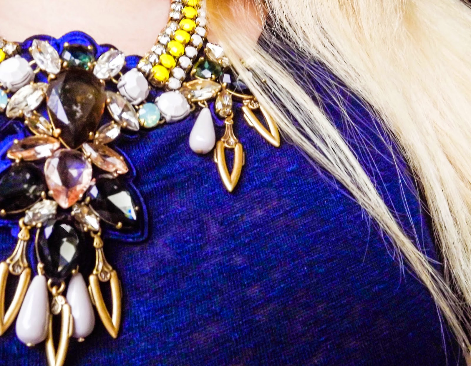 Outfit: T-shirt- J.Crew, Pants- Gap, Hat- Old Navy, Wedges- Target, Purse- J.Crew, Necklace- J.Crew, Bracelets- Loren Hope and J.CrewNavy and Olive are two of my favorite colors and paired together, they make any rainy day, a better day. The look was topped off by my felted hat from Old Navy which kept my hair from frizzing out (Yay! My solution!)