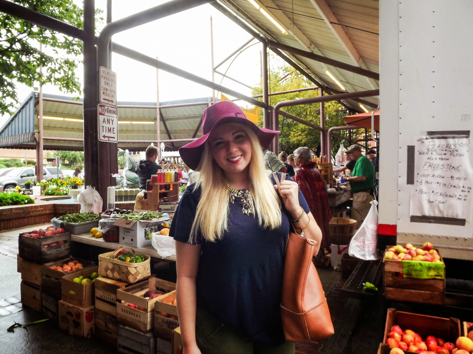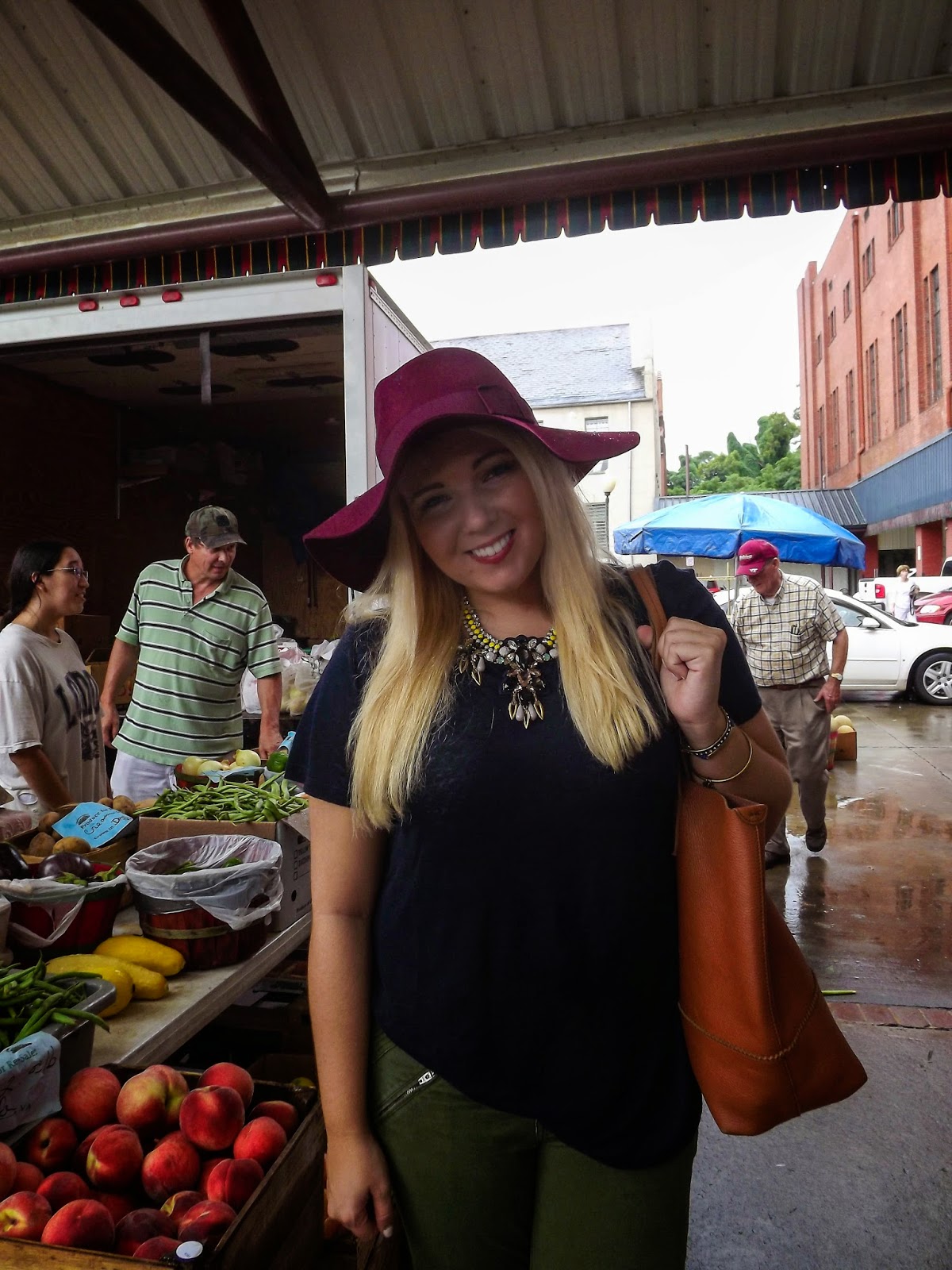I spent the rainy morning at the Farmers' Market with my parents, admiring all of the fresh fruits and veggies, the booth with the honey, and of course the freshly cut flowers. The market is always one of my favorite places in Lynchburg. Everyone there has the wholesome sense to them that I love. It makes me feel like I'm back home again. I made sure to pick up some fresh grapes, nectarines, and my favorite! Pears! The morning was a perfect one, spent with my loved ones after I had made it through the week of back to class. It's great to have family that is only a few hours away to make the trip. xoBCC