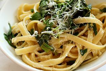 Once the fettuccine has cooked, toss with the herb mixture. Drizzle with the olive oil and citrus juice dressing. Sprinkle Parmesan cheese and black pepper. Toss to coat.