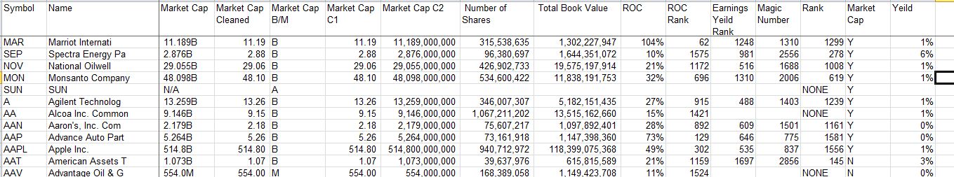 - All of the stocks are ranked based on profitability and return on capital to give the final table.